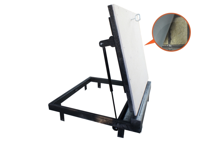 Рама без наличников выставляется в существующем отверстии 87*80 см с допусками, крепится в перекрытии через вертикальные пластины даже когда Ваш ремонт закончен и пол выложен керамогранитом или настелена ламинированная доска.