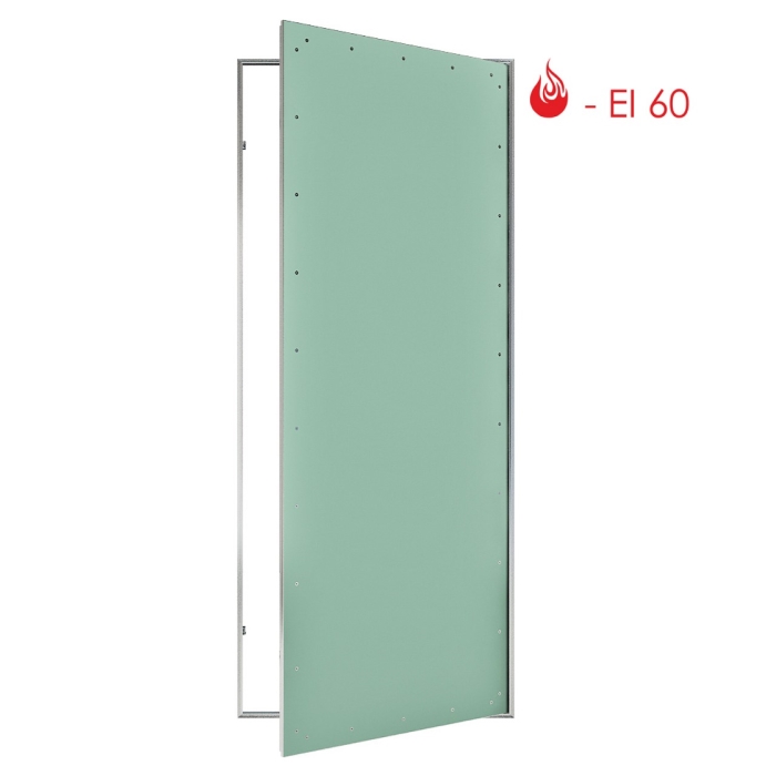В исполнении с сертифицированным пределом огнестойкости EIS60 по притвору проклеивают термоактивную ленту, в створке прокладывают базальтовую плиту с подшивкой огнестойким гипсокартоном.